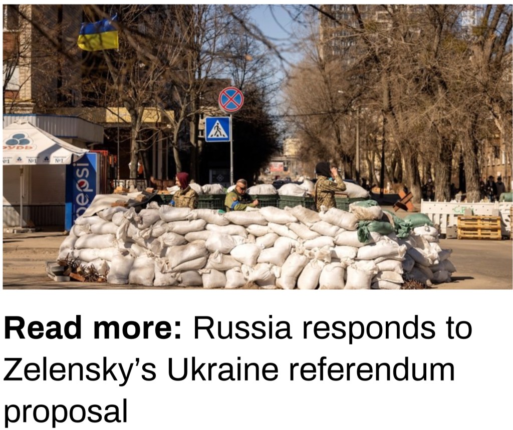 On Tuesday, Kremlin spokesman Dmitry Peskov said the negotiations were progressing “a lot slower and are less substantial than we want them to be.” His remarks came in response to Zelensky, who previously suggested that key points concerning territorial integrity and recognition of the breakaway regions of Donetsk and Lugansk could be put to a referendum.