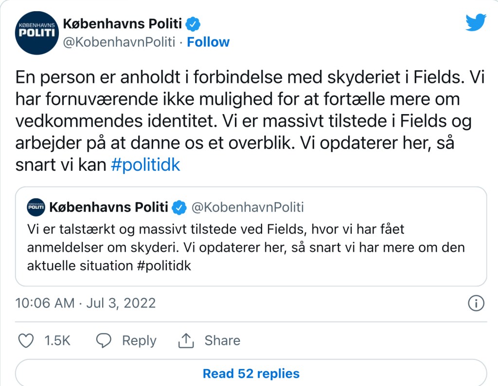 Police: Three Killed, Three in Critical Condition After Shooting at Copenhagen Mall