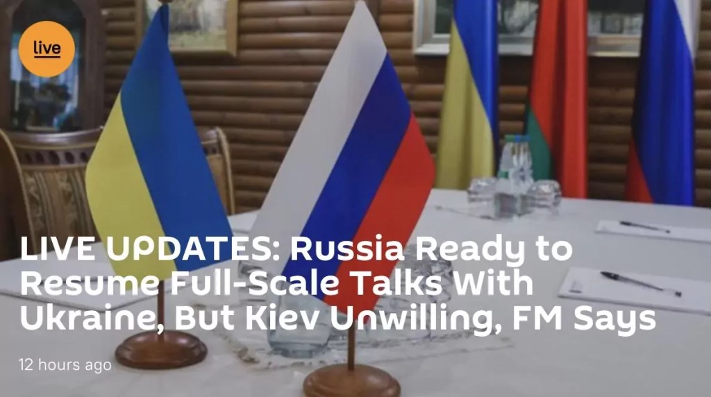 LIVE UPDATES: Russia Ready to Resume Full-Scale Talks With Ukraine, But Kiev Unwilling, FM Says