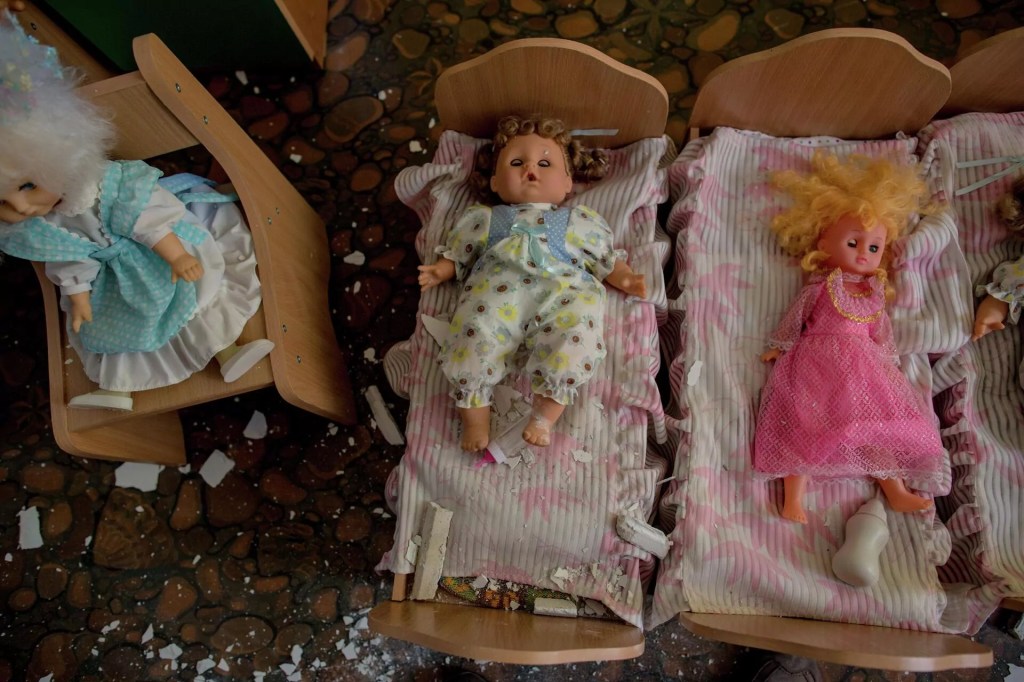 “I will never forget that day, May 26, 2014. We were excused from work early, at 11 a.m. Another batch of medication was not expected, and I was let go. Little Arina was in daycare, so I decided to pick her up early and bought some strawberries. It was a warm, sunny day that I wanted to spend with the kids. I picked up my daughter, took her home, and then all hell broke loose. There were planes flying, fighter jets, helicopters, shooting. My son hadn’t come home from school yet, and our school wasn’t far from home. All his classmates had long since gone home. The last bell of the elementary school was over. And he still wasn’t there. He knew I was at work, so he took his time. He stopped by to visit his godmother, and that’s on the other end [of the city]. I didn’t know it at the time. I was running between school and home, not knowing where he was. Meanwhile, a war was breaking out all around me. Suddenly I saw him, and together we quickly ran toward the house. A Ukrainian helicopter appeared above us and started shooting at our feet. I didn’t see anyone fall, but they were shooting at the feet of the fleeing civilians. My child was running with eyes full of terror: ‘Mom, is this war?’ I dragged him home, and at that very moment one of the helicopters was shot down. We came home and my daughter, who had just turned two, was screaming with fear in such a heartbreaking way that I will never forget it in my life. She had never screamed like that. It was terrifying. After those events, my son Fyodor, who was barely ten years old at the time, contracted the most severe form of psoriasis because of the stress he endured. He will have this disease for the rest of his life.”