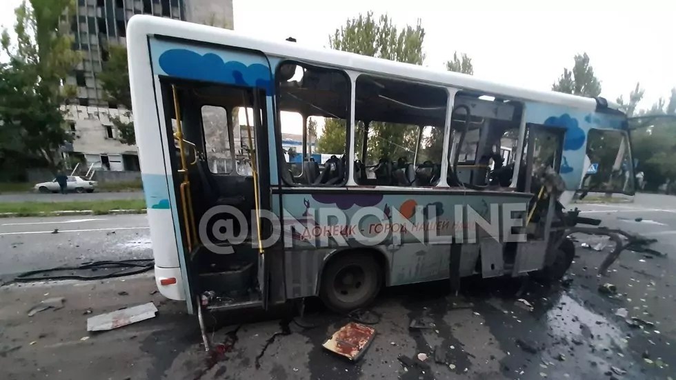 At least three civilians were killed in the Ukrainian shelling of northwestern Donetsk, the local territorial defense force said on Friday. One of the Ukrainian projectiles hit a regular bus carrying people home from work, authorities said, adding that the bus was“destroyed.”