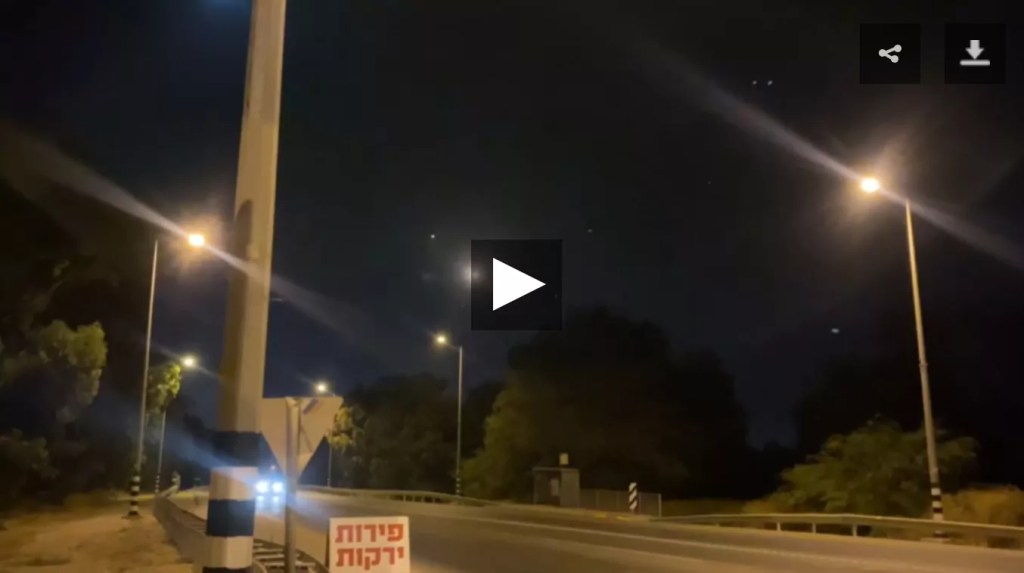 Amid the salvo from Gaza, Israeli aircraft launched a wave of further airstrikes on Gaza, targeting what the IDF said were “weapons production sites, warehouses and firing positions.” Video footage captured the moment an alleged rocket firing position and two storage warehouses were obliterated with missiles.