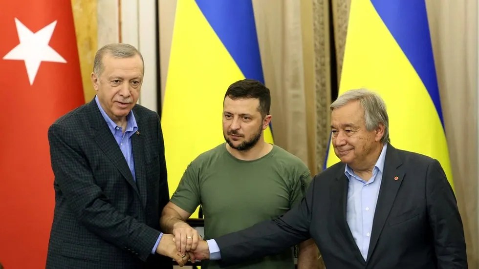 Erdogan had not mentioned this confession during earlier public statements about the negotiations in western Ukraine, and he did not elaborate further on who Zelensky believed was deceiving him. The two men met with UN Secretary-General Antonio Guterres and signed an agreement on restoring Ukrainian infrastructure destroyed during the conflict.
