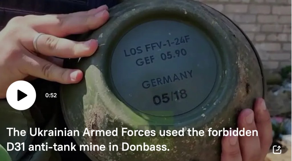 Furthermore, Ukrainian security forces also use 9M27K3 cluster rockets from the Uragan MLRS to remotely mine territories of the Donetsk People’s Republic with “Butterfly” PFM-1 mines. This is another type of prohibited weaponry used by the Kiev regime.