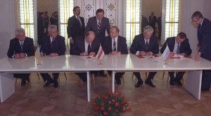 The Soviet Union collapsed with dramatic speed during the latter part of 1991, as one Soviet republic after another declared independence. In December 1991, the presidents of Russia, Ukraine, and Belarus met near the Belorussian town of Brest and signed the Belavezha Accords, which formally declared the Soviet Union effectively dissolved and established the Commonwealth of Independent States (CIS) in its place.
