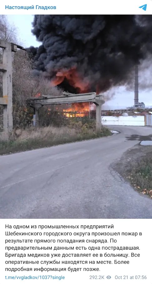 Later in the day, the governor gave details of another attack on an industrial complex in the same district, directly hit by a Ukrainian shell, causing a major fire. According to preliminary data, at least one woman was injured in the incident.