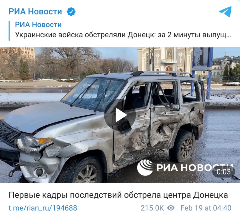 - “Украинские войска выпустили 40 ракет по Донецку за две минуты.” РИА НОВОСТИ, 19 Feb. 2023, Accessed 19 Feb. 2023.