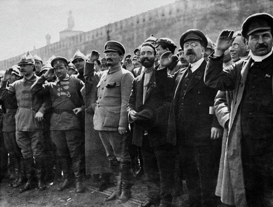 From right to left – Mikhail Tomsky, Lev Kamenev, through one – Leon Trotsky, Mikhail Lashevich