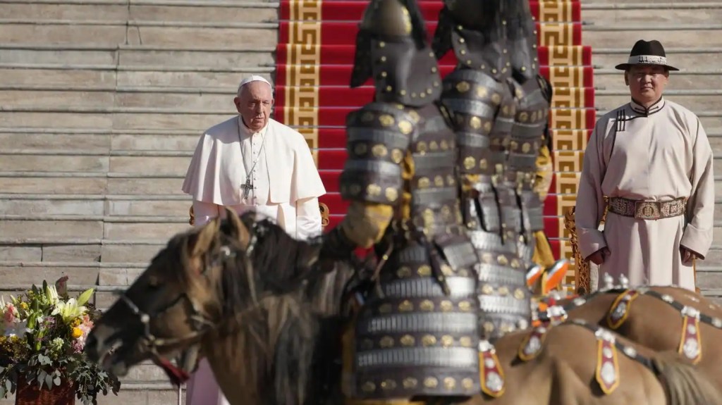 - Photo: Pope Francis was greeted by a guard of honour as he met President Khurelsukh in Ulan Bator, the Mongolian capital by ANDREW MEDICHINI/AP Courtesy of Associated Press