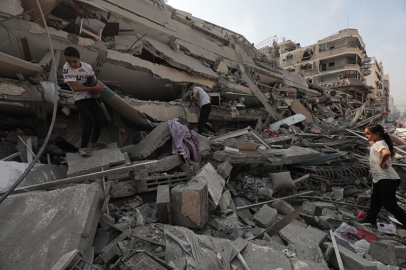 “Damage in Gaza Strip during the October 2023 – 15” by Wafa (Q2915969) in contract with a local company (APAimages) is licensed under CC BY-SA 3.0 .